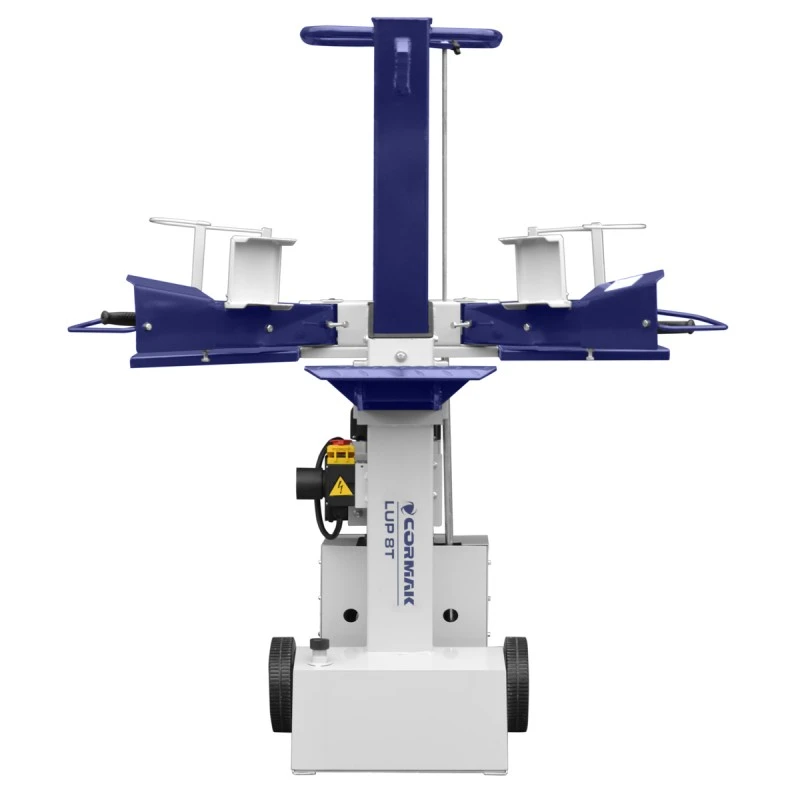 Dispositif équipé de tables latérales pour faciliter l’alimentation du matériel à fendre.