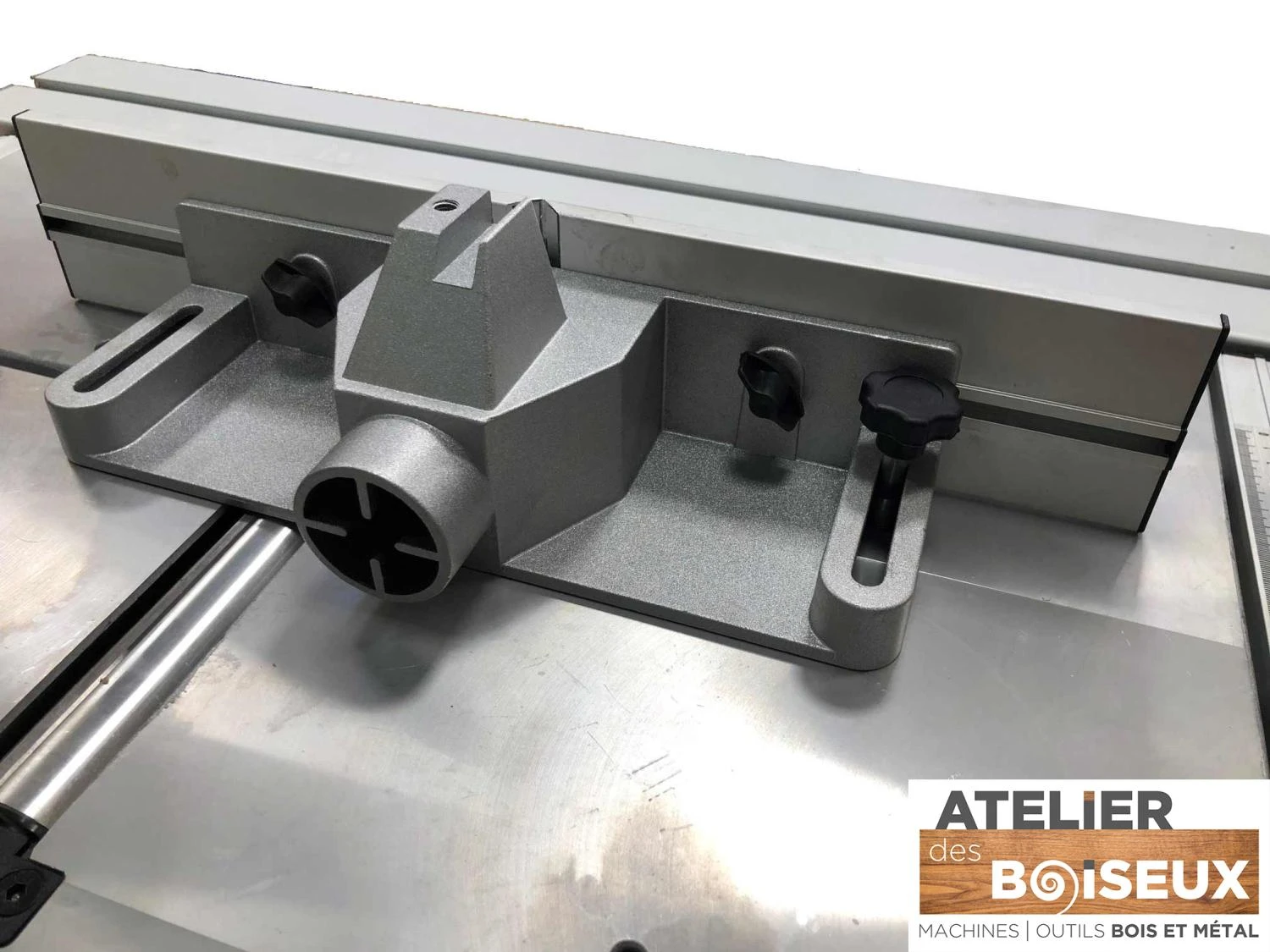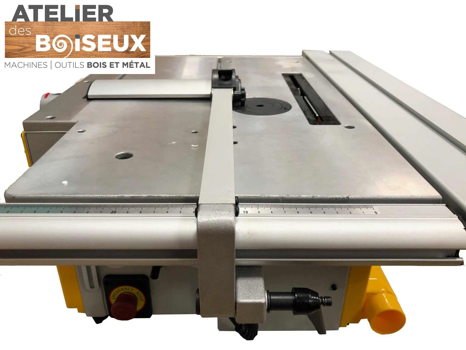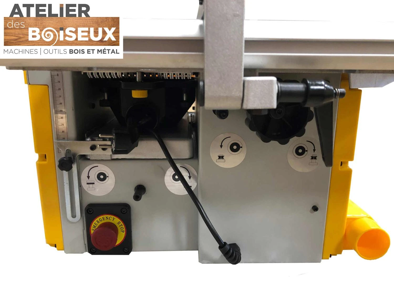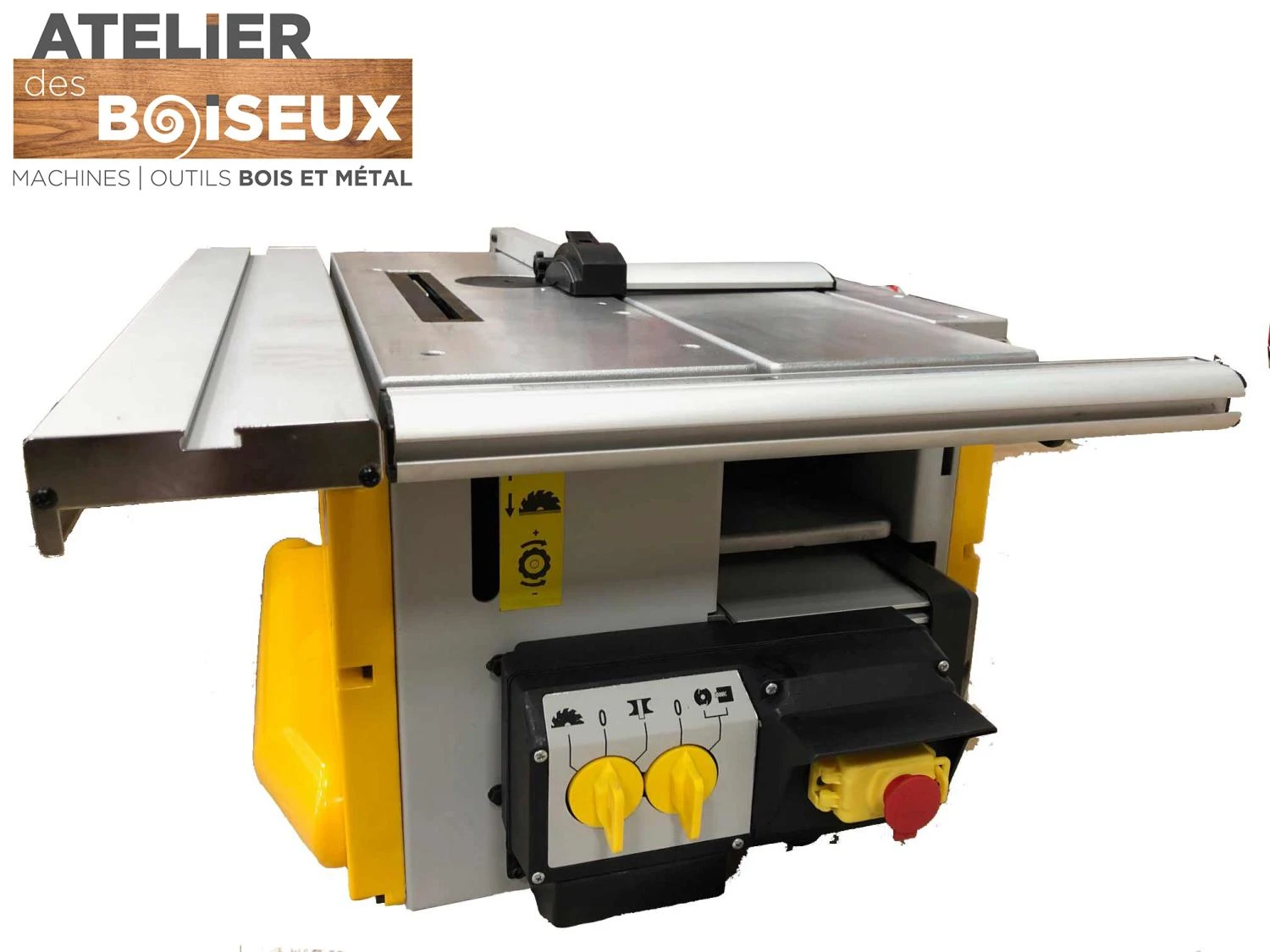- 6 fonctions : scie circulaire, chariot de sciage, défonceuse, mortaiseuse, raboteuse, dégauchisseuse.