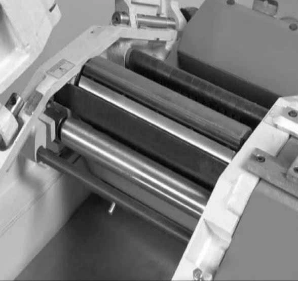- Table de rabotage en fonte guidée par 3 cylindres pour éviter le basculement ou le pivotement