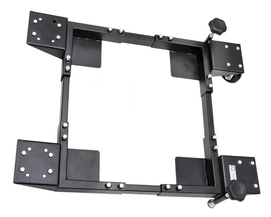 - Socle fabrique en tôle acier renforcé avec armoire pour le rangement d’outils.