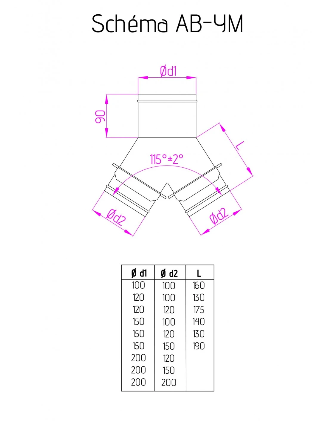 - ø ext. de départ : ø200 mm