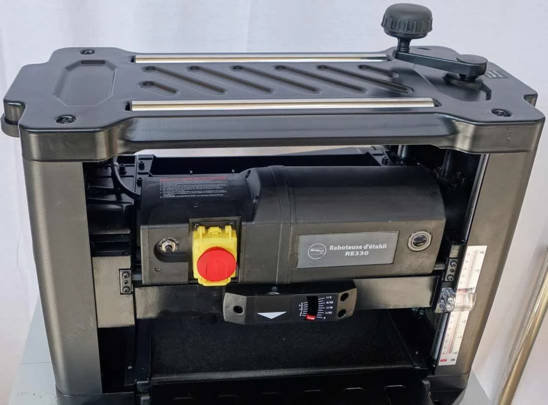 La hauteur de rabotage peut également être avantageusement ajustée via un système de pré-réglage où la hauteur est prédéterminée, permettant de passer un tournemain d’une hauteur à une autre.