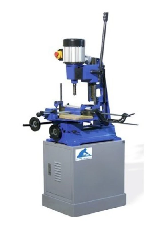 Elle est équipée de vérins à gaz compensant le poids de la tête, d’un grand levier de manoeuvre à positions multiples, d’un moteur asynchrone et d’un guidage précis par une ou deux colonnes. Livrée avec un ensemble mèche et bédane.