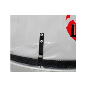- Le serrage sur le collecteur se fait par une sangle à feuillard métallique passée dans l’ourlet du sac.