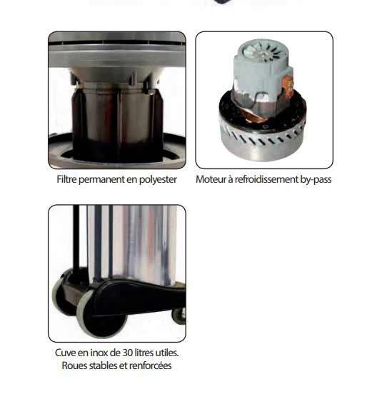 Aspirateur cuve inox 30L 1200W ASP305 | Leman