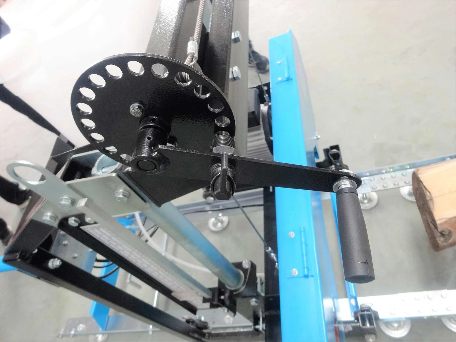 - La hauteur de coupe est réglée par manivelle graduée manuellement.