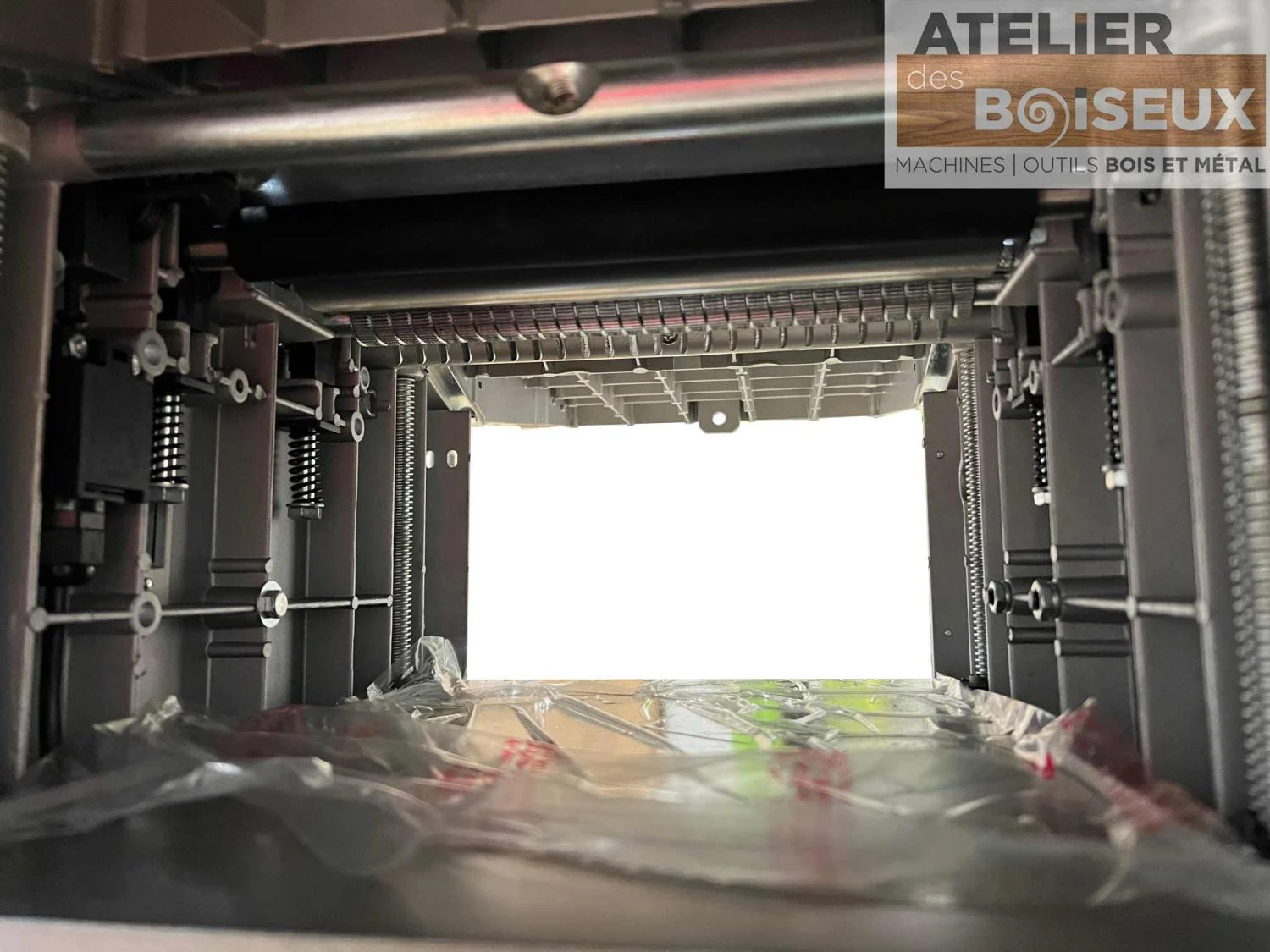 - Le rouleau d’entraînement de sortie est caoutchouté afin de ne pas marquer le bois.