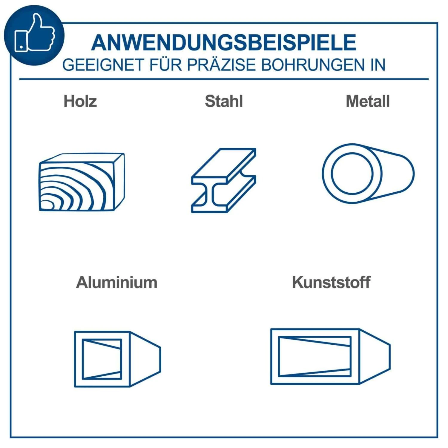 - Elle dispose donc d’une excellente polyvalence, renforcée par la puissance de son moteur de 500 watts, qui lui permettent de pratiquer les opérations de perçage du bois, tendre comme dur, tout comme les opérations sur le métal, les matières plastiques et tous les matériaux courants.