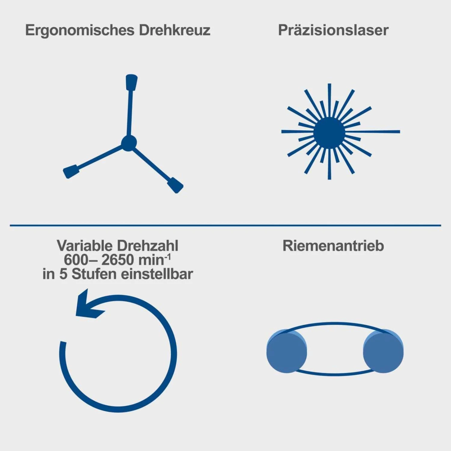 - Equipée d’un variateur proposant jusqu’à 5 vitesses, elle permet de s’adapter à tous types de travaux, avec rapidité et simplicité, par changement de courroie au niveau du carter supérieur.