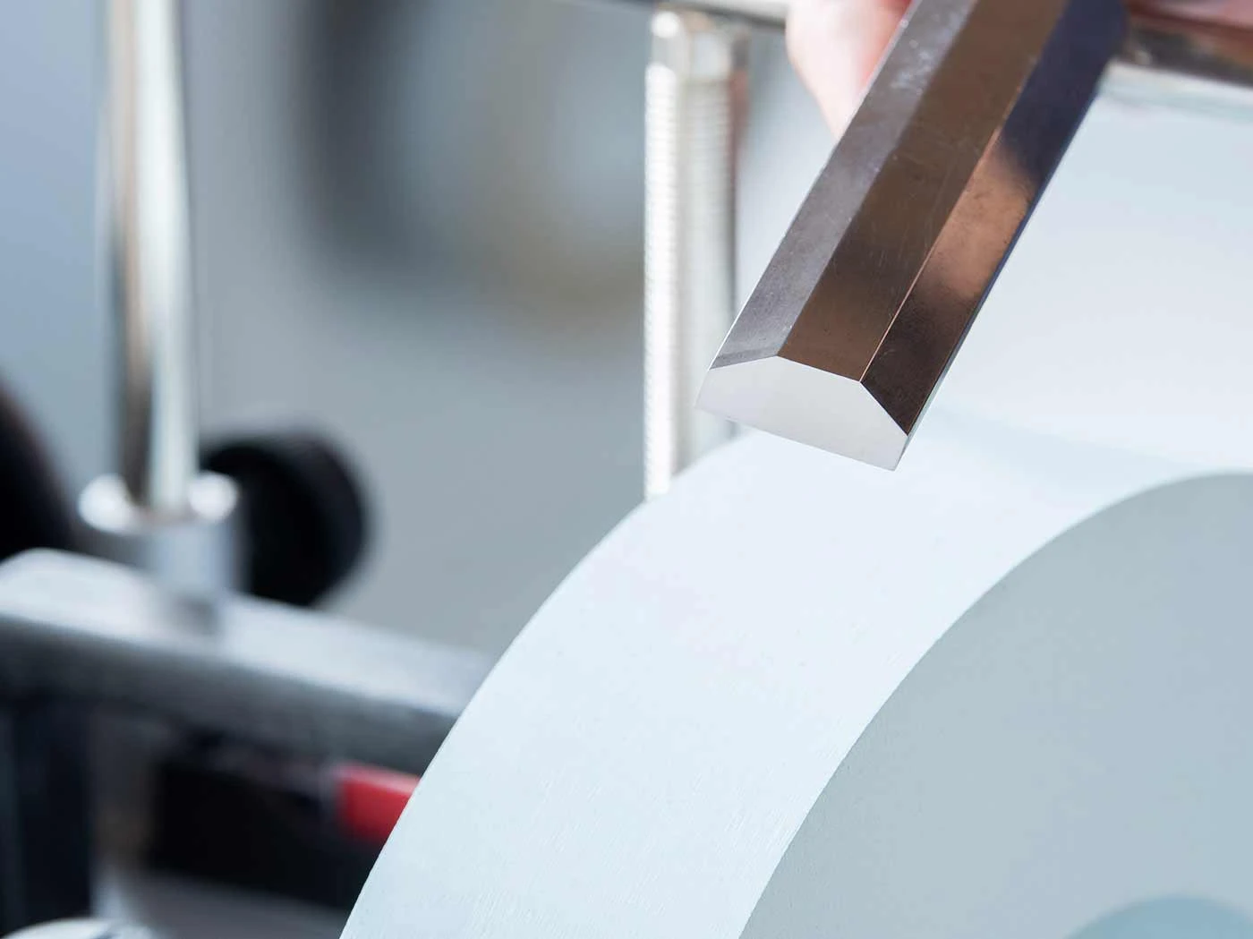 - Elle affûte à merveille les outils à main tels que gouges de sculpture, ciseaux, couteaux, fers de rabots et ciseaux à bois; là où un minimum de matière doit être enlevée et la surface obtenue doit être parfaitement lisse.